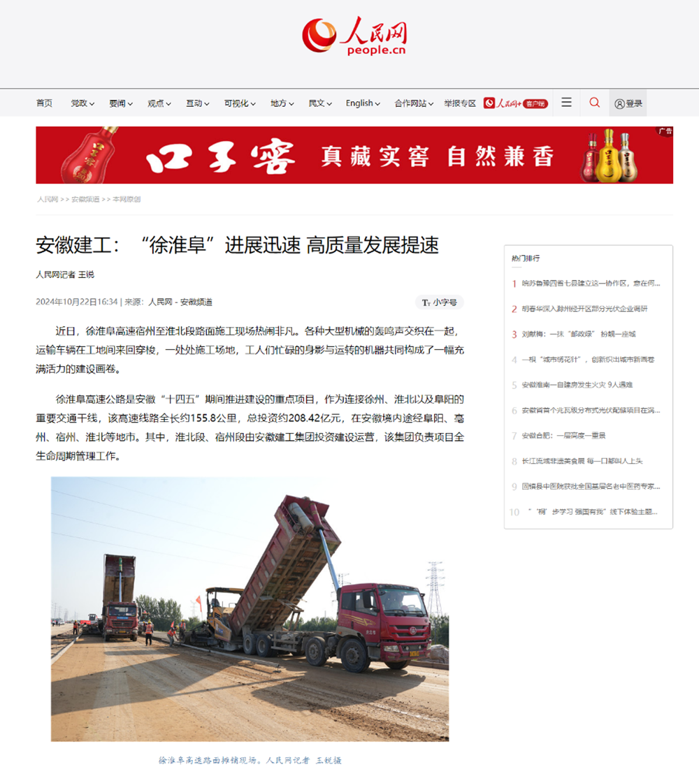 近日,,, ,,人民网安徽频道重点报道了安徽XPJ官网投资建设的徐淮阜高速项目 。。。。。