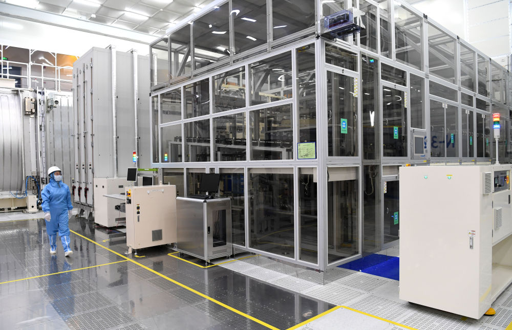 ??2022年7月28日,,,,,,安徽合肥京东方显示技术有限公司的工作人员在10.5代生产线上作业。。。。。。。。