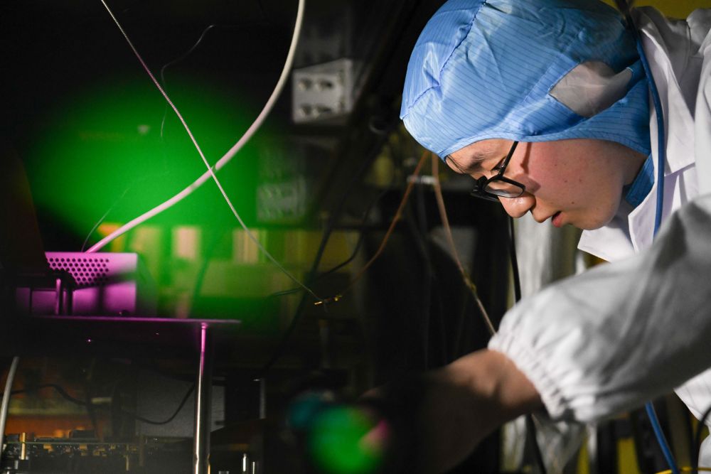 ??2022年1月31日,,,,,,中国科学技术大学学生在中国科学院量子信息重点实验室做实验。。。。。。。。