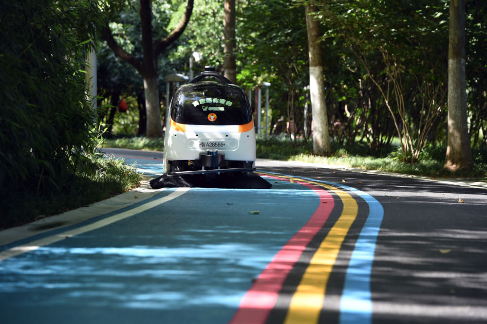 ??2022年6月24日,,,,,,智能无人清扫机器人在安徽合肥一处公园清扫路面。。。。。。。。