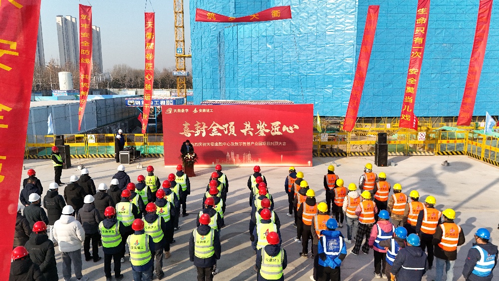 喜封金顶,,,, ,共鉴匠心 。。。。。2025年1月11日,,,, ,安徽XPJ官网德州天衢金融中心及数字智慧产业园项目正式封顶 。。。。。