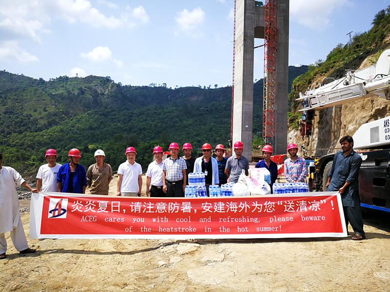 Mr. Chen Xiuxiang has inspected two projects under construction contracted and undertaken by the Branch - the Reconstruction Bridge of Karot and the Afghani Embassy Buildings in Pakistan, and Mr. Chen Xiuxiang also “brought cool and refreshing” to the workers on the sites in such a hot summer season.