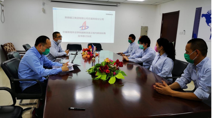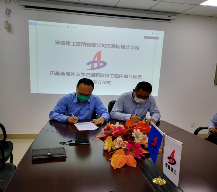 At the meeting, an internal target responsibility statement was signed between Mr. Hu Haitao, on behalf of the Branch, and Mr. Pan Zhengqiang, on behalf of the Project. Mr. Hu Haitao,,,,,,,thereafter,,,,,,,has praised all the staff working for the Project for sticking to their posts and reasonably arranging the production tasks amid the current epidemic situations. He stressed that winning the rehabilitation project of the Pakistani Foreign Service Academy was an important achievement for the Branch staff in such a difficult time and the Project would strictly adhere to the standards of "marketization, contracts, nomlalization, systematism, standardization, refinement and informatization", to enhance the ability of management and fully mobilize the employees'' subjective initiatives in ensuring the quality and schedule targets under the contract.