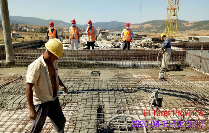 El Tarf, Algeria, August 10,,,,,2020 / At noon on August 10, the main structures of the 1,000-unit housing project in Algeria`s El Tarf province, contracted by ACEG Algerian Branch, was successfully completed as the last barrel of concrete was poured in place.
