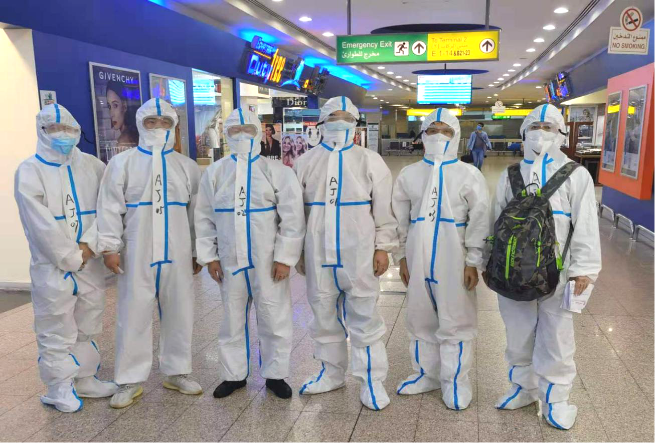 During the long flight of more than 20 hours, they were fully equipped with full protective clothing for self-protection, they wore protective suits, goggles, medical gloves and N95 facial masks the whole journey. They were required not to drink or eat, and strive to achieve 100 percent “zero contact” between their skins and the surrounding objects.