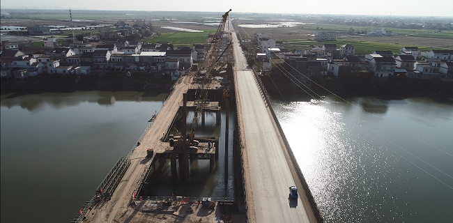 The average distance between the main bridge under construction over Huayang River and the old bridge in operation is less than 0.5m and the pile foundation is located inside the riverbed in poor geological conditions of complex stratums and the construction spaces were limited. Since the commencement of the project in 2019, under the strong supports of the administrative departments at all levels and the technical guidances of several well-known experts of the company and the industry, the new Huayang River Bridge has undergone several design adjustments and optimization, that have resulted in the improvement of the navigable level of Huayang River, better operation safety of the old bridge and less construction investment costs.